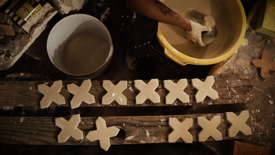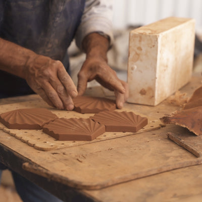 Some tiles are pressed with precision, others are formed entirely by hand, each taking shape in its own way.