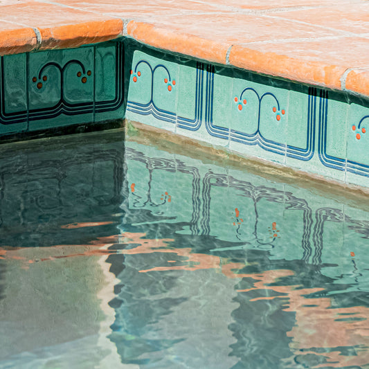 Unlike conventional pool tiles, our waterline tiles are hand-painted and unique. We offer bold, textured relief tiles or smooth, shimmering, high gloss designs. These dense, high-fired clay body tiles are sure to be a showstopper.