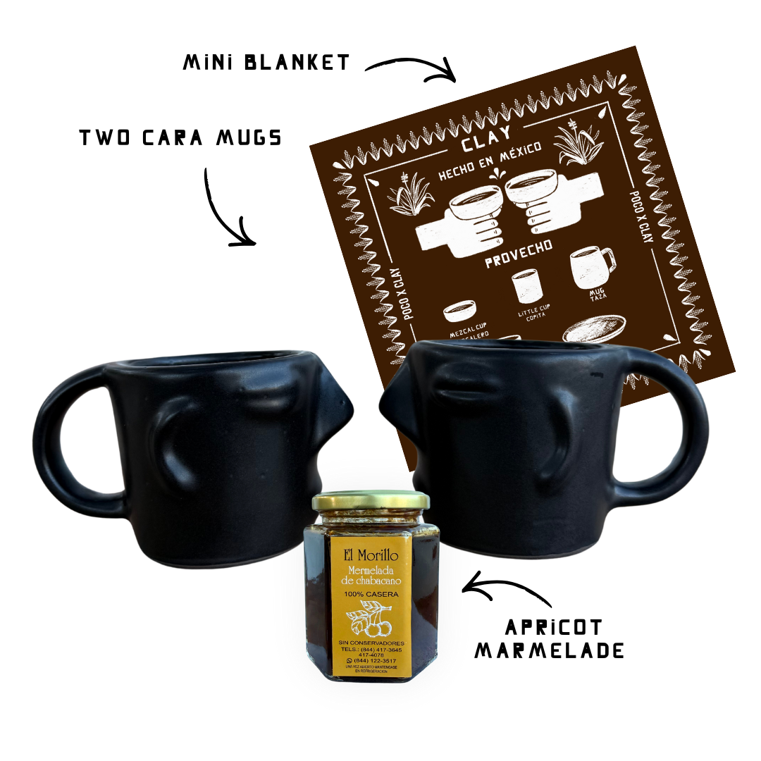 A cozy kit built for two. It includes a pair of face mugs for your daily ritual, a jar of house-made apricot marmalade from our favorite hotel in Saltillo, and a Clay Imports bandana that doubles as the easiest picnic blanket (or your new go-everywhere sidekick).