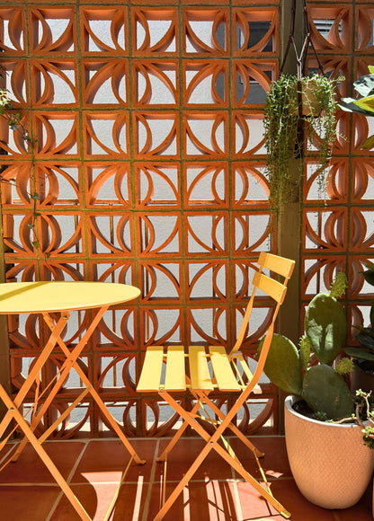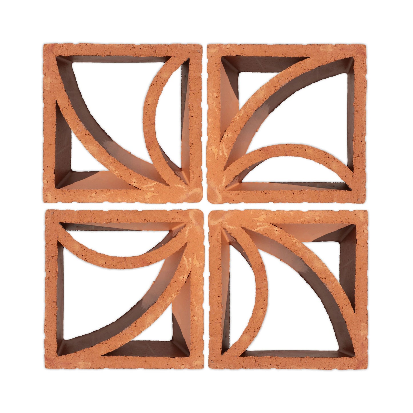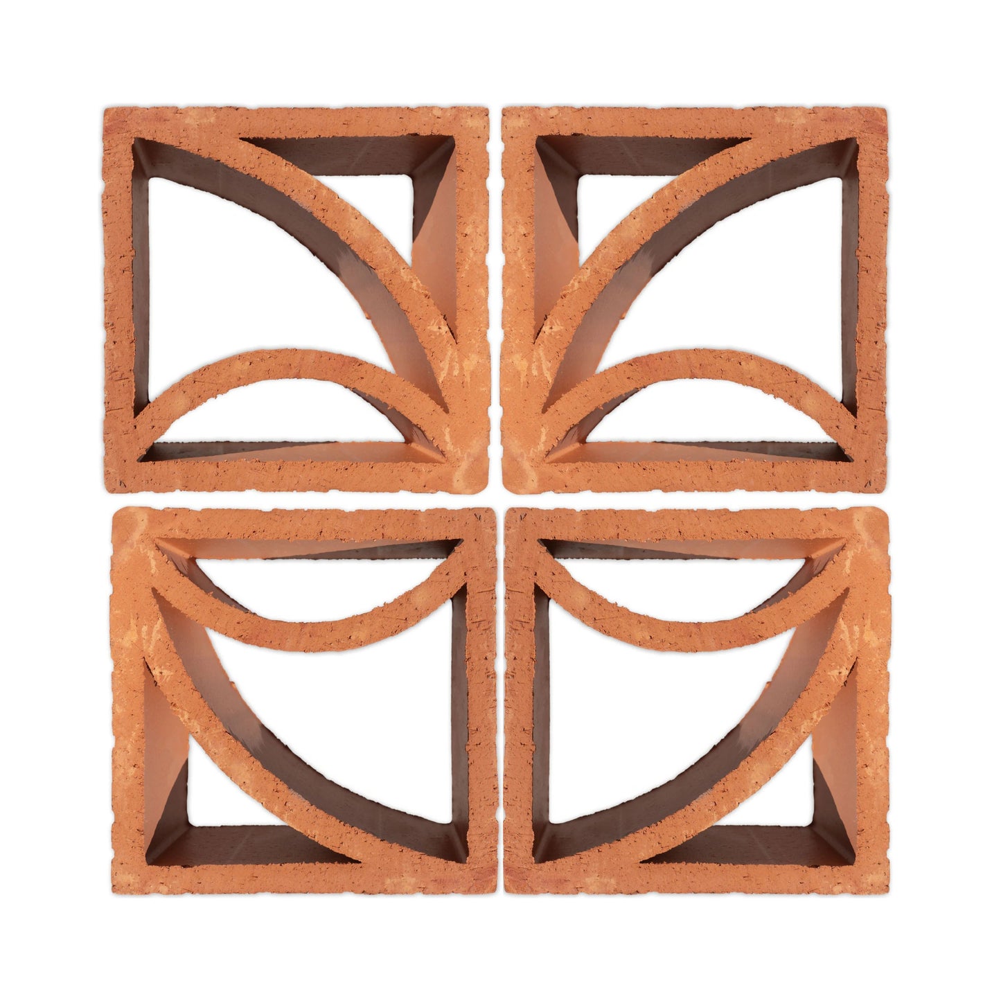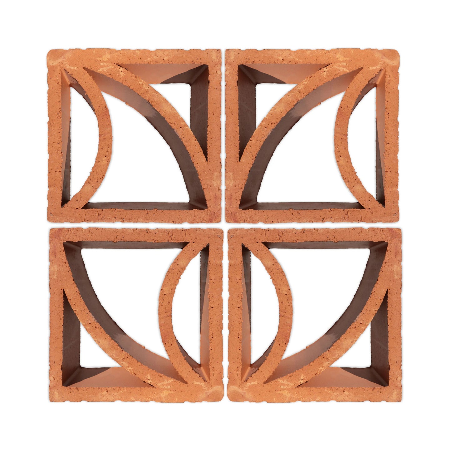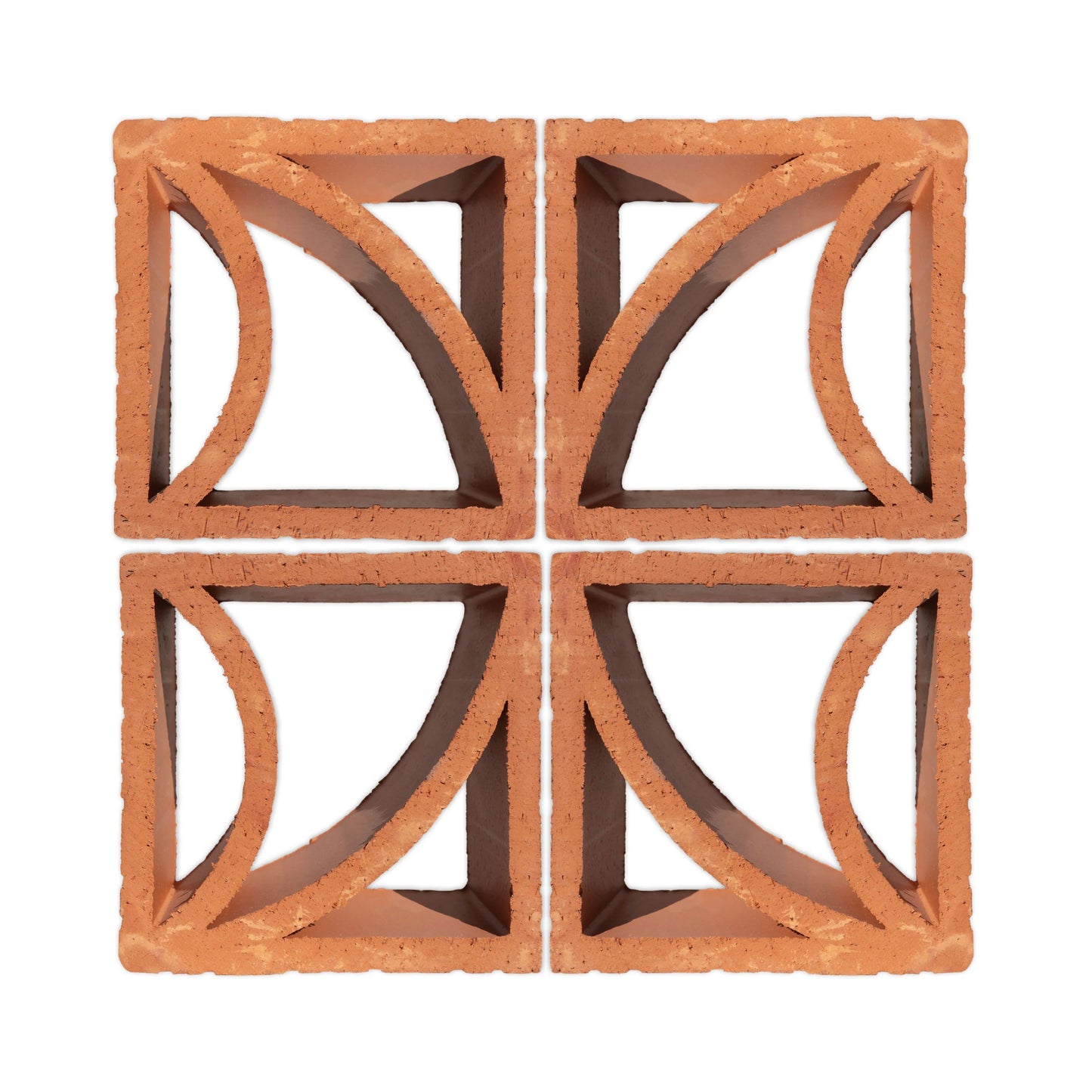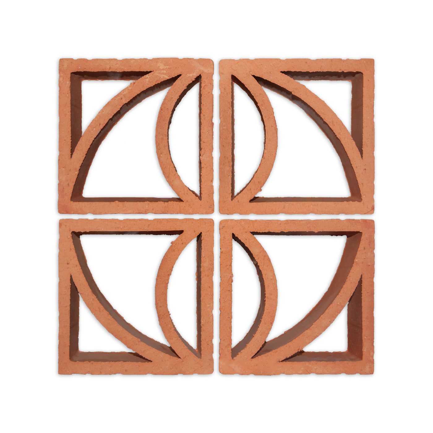 Mexico, of course! We produce our Clay Imports breeze blocks using 100% natural clay native to Central Mexico. Each piece is produced by extracting dense red clay through a patterned dye (think Play-Doh). Then, the block is fired. Voilà, a decorative breeze block for any project.