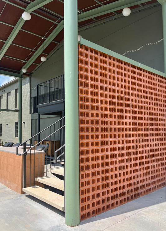 Mexico, of course! We produce our Clay Imports breeze blocks using 100% natural clay native to Central Mexico. Each piece is produced by extracting dense red clay through a patterned dye (think Play-Doh). Then, the block is fired. Voilà, a decorative breeze block for any project.