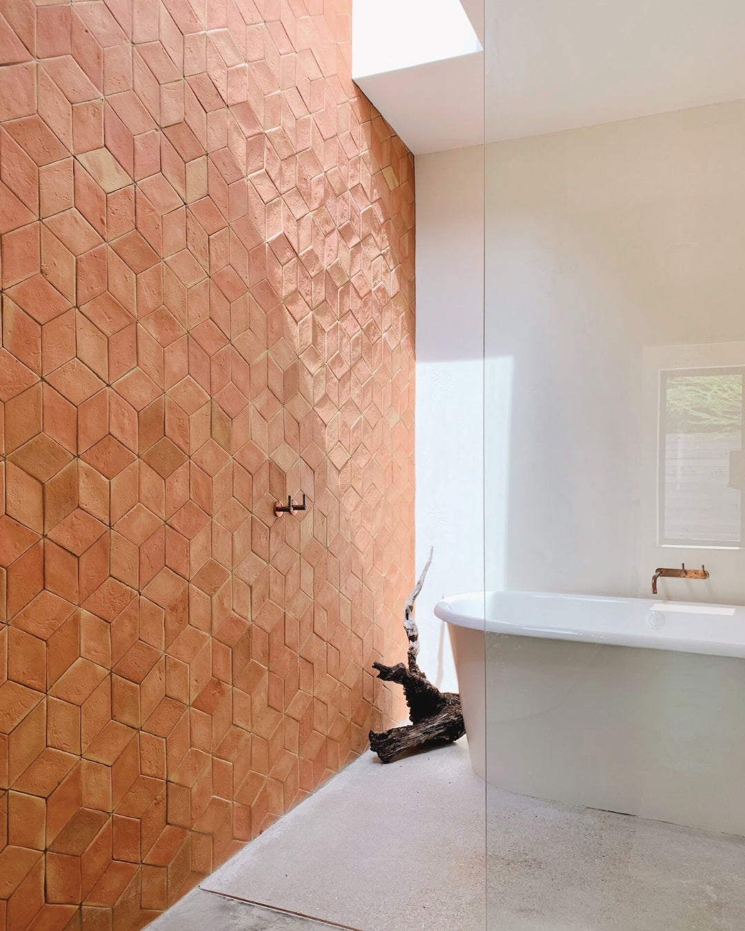 Larger joints are used with larger format tiles to accommodate for irregular sizing of handmade tiles while maintaining straight joints and their traditional aesthetic.