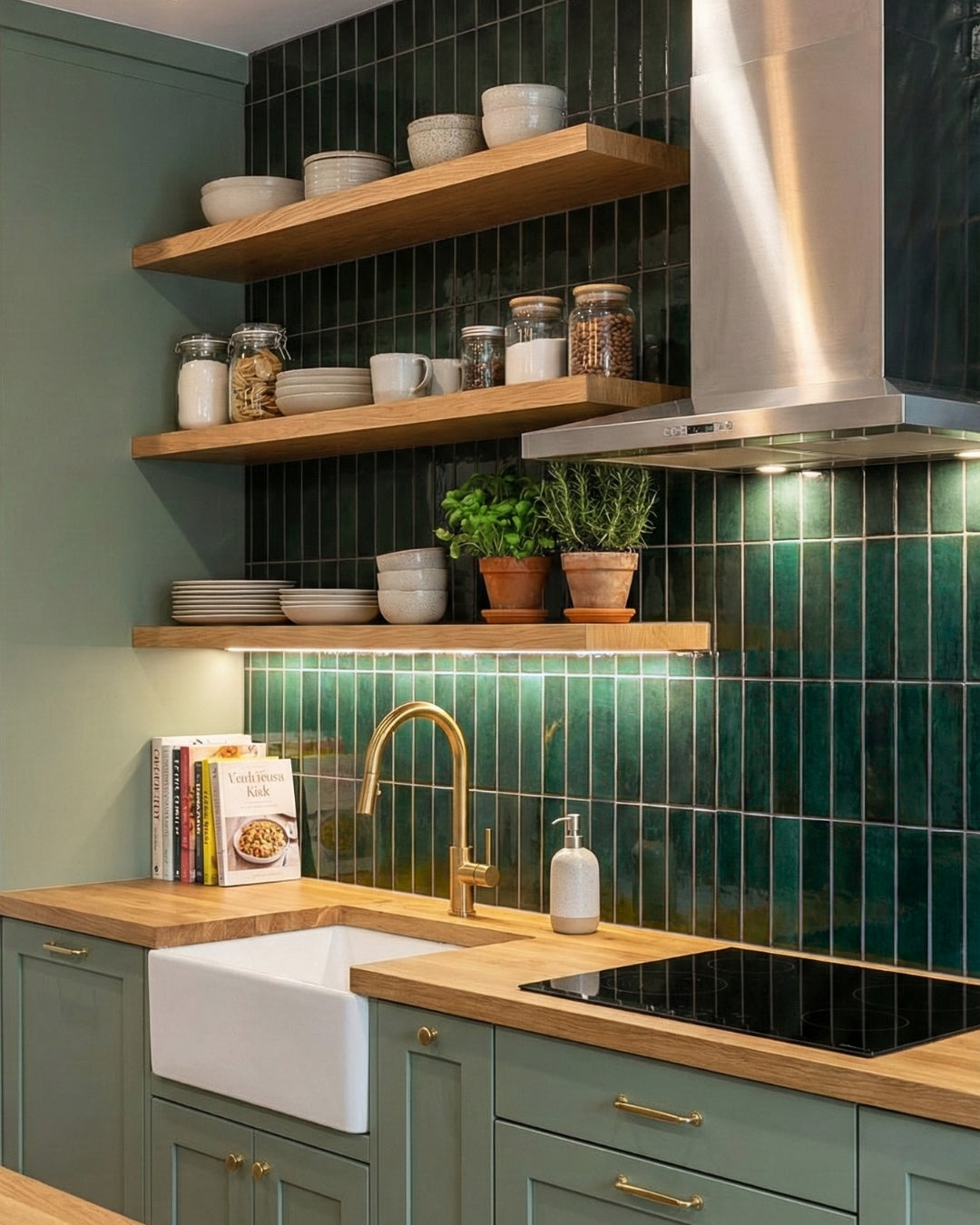 Between 1/8" and 1/4" to accommodate the natural variation that comes with handmade tiles. It’s common for there to be slight size differences, up to ± 1/4", which is completely normal. A slightly wider grout line helps manage alignment and leveling.