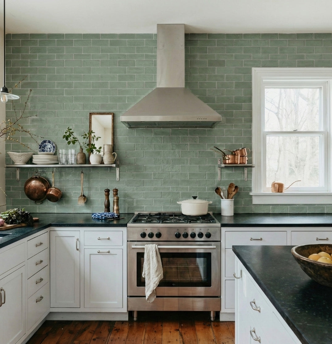 Larger joints are used with larger format tiles to accommodate for irregular sizing of handmade tiles while maintaining straight joints and their traditional aesthetic.