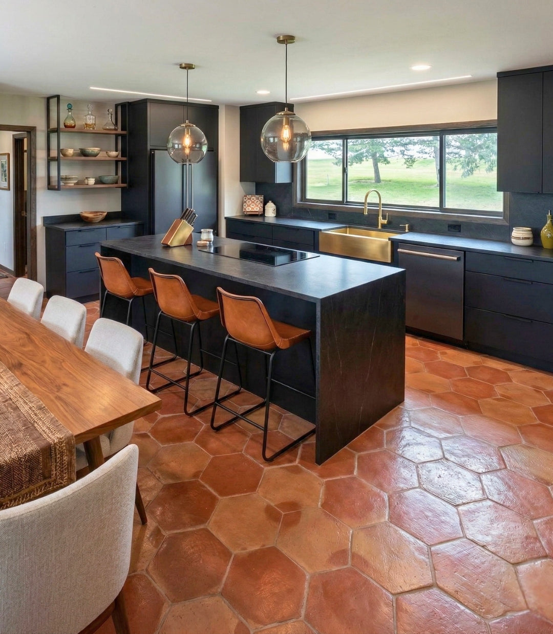 Wood Transition: You can use a matching wood door transition piece for a seamless shift from terracotta to wood flooring, creating a connection. It may have a slight elevation depending on the installation surface heights.