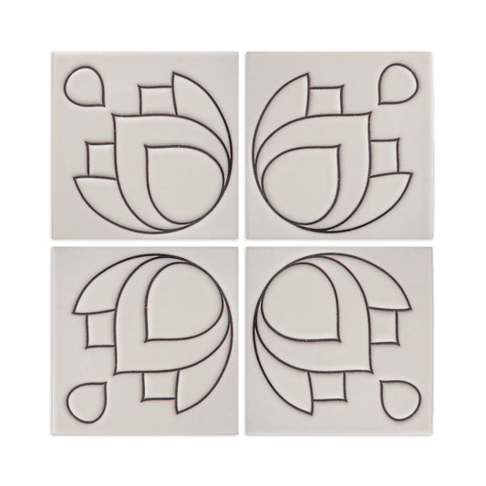 Tiles with geometric lines require careful installation. Using spacers is essential for alignment, and we recommend larger joints to accommodate variations in the hand-screened lines. As these tiles are handcrafted, achieving perfect alignment can be difficult; larger joints can help, while smaller joints may accentuate discrepancies in symmetry.
