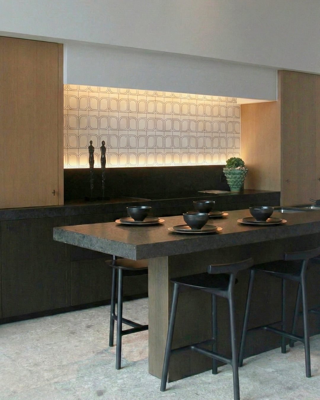 Tiles with geometric lines require careful installation. Using spacers is essential for alignment, and we recommend larger joints to accommodate variations in the hand-screened lines. As these tiles are handcrafted, achieving perfect alignment can be difficult; larger joints can help, while smaller joints may accentuate discrepancies in symmetry.