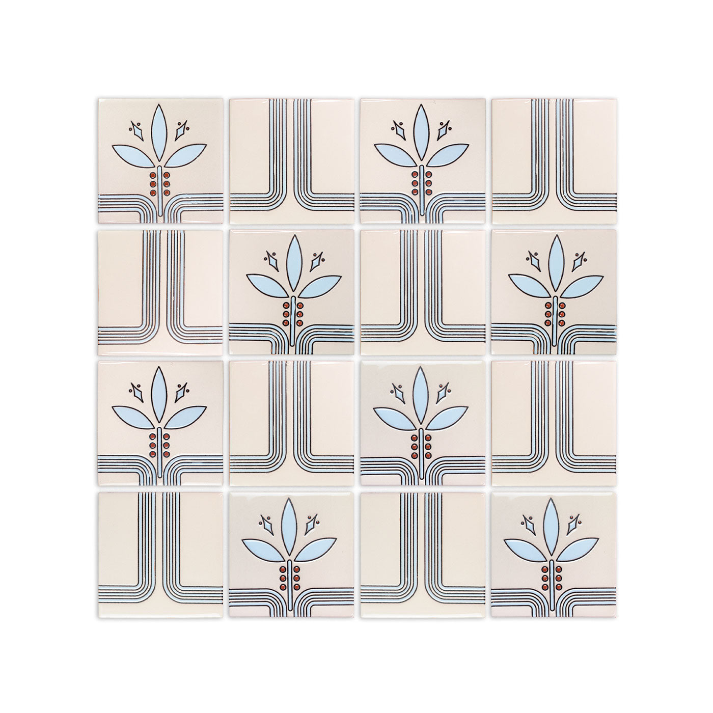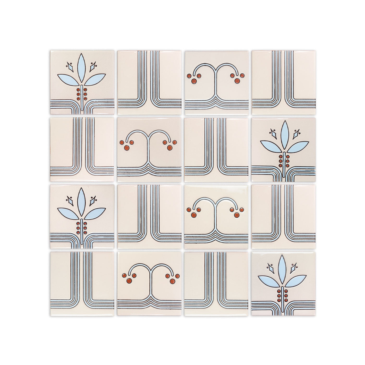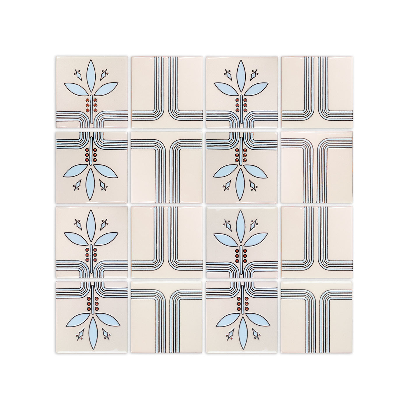 Tiles with geometric lines require careful installation. Using spacers is essential for alignment, and we recommend larger joints to accommodate variations in the hand-screened lines. As these tiles are handcrafted, achieving perfect alignment can be difficult; larger joints can help, while smaller joints may accentuate discrepancies in symmetry.