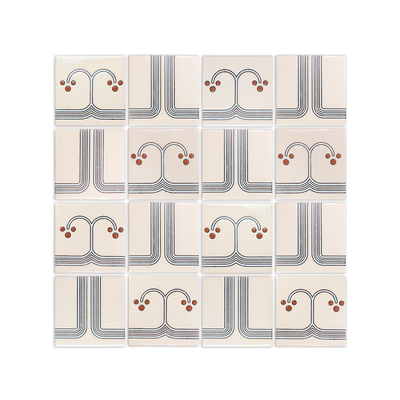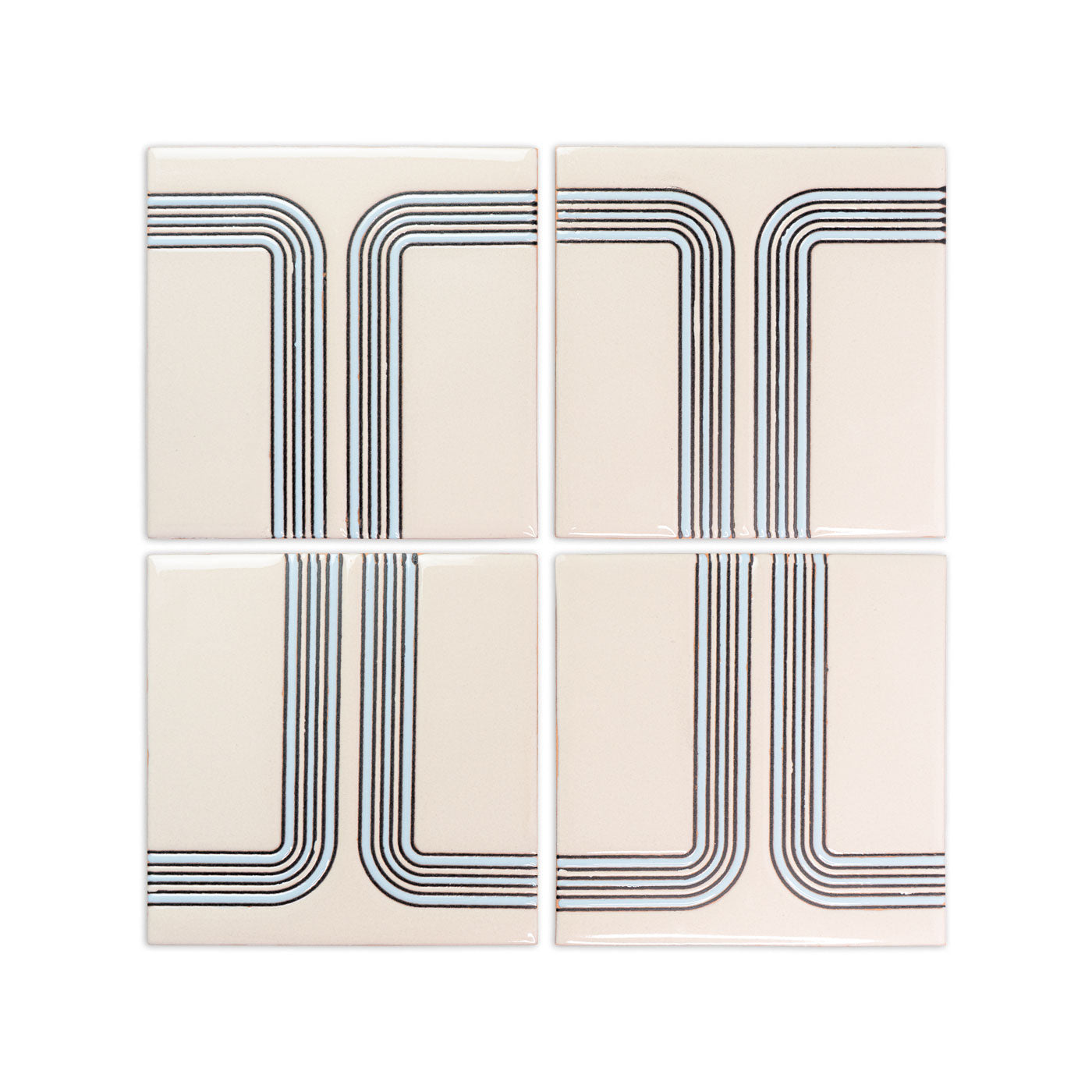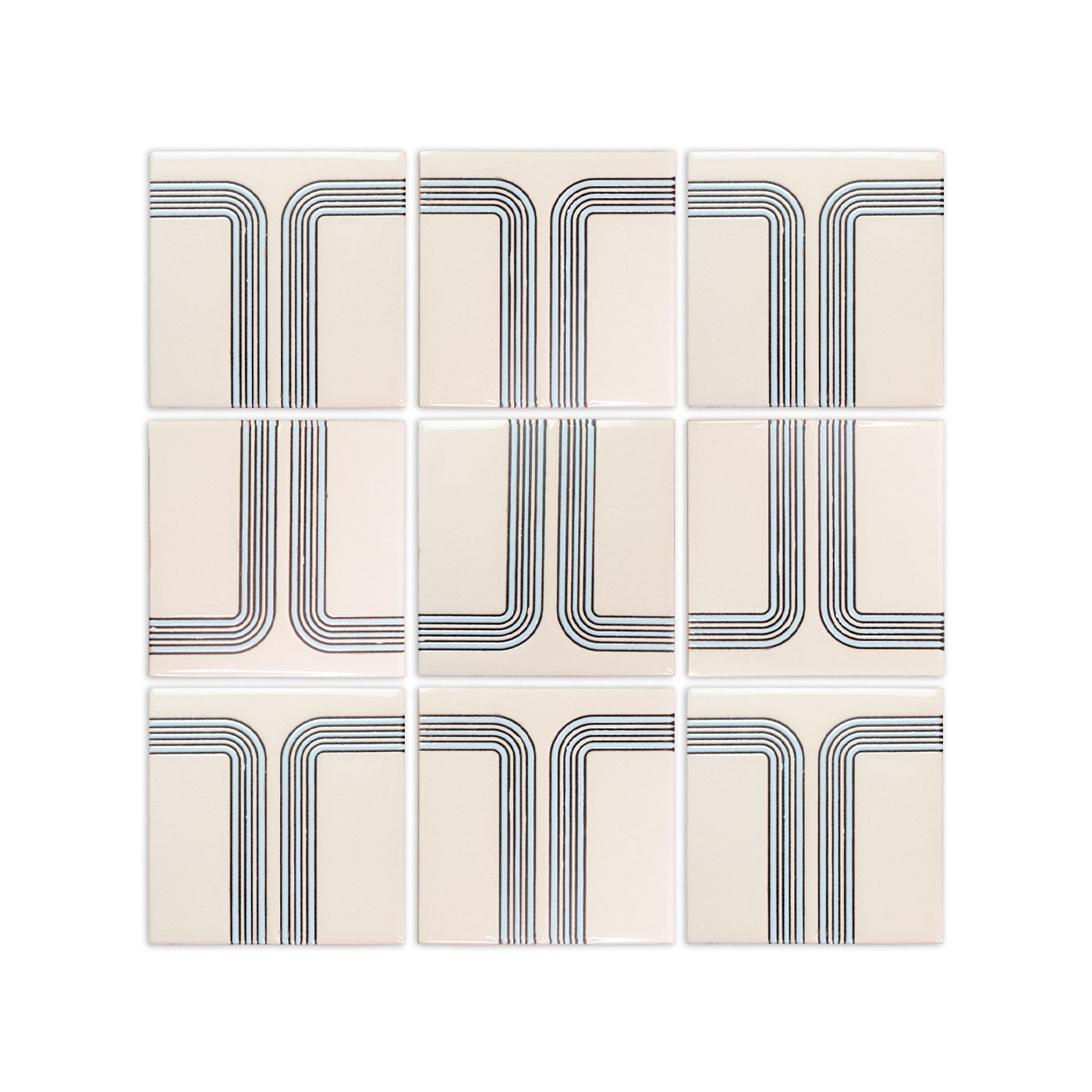 Tiles with geometric lines require careful installation. Using spacers is essential for alignment, and we recommend larger joints to accommodate variations in the hand-screened lines. As these tiles are handcrafted, achieving perfect alignment can be difficult; larger joints can help, while smaller joints may accentuate discrepancies in symmetry.