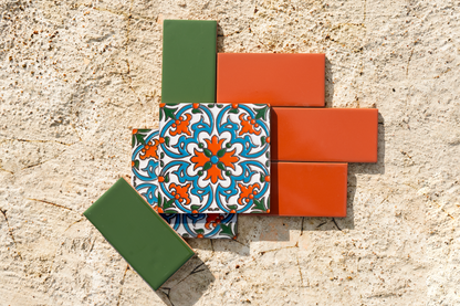 With its roots in Mexico, this pattern exudes energy and playfulness despite its delicate appearance. The bold combination of vibrant orange and blue adds to its lively character. This pattern is not afraid to make a splash and doesn't take itself too seriously.