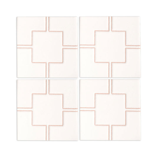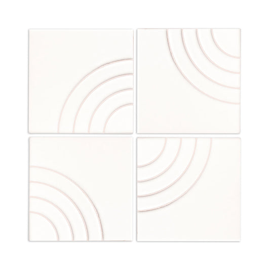 Tiles with geometric lines require careful installation. Using spacers is essential for alignment, and we recommend larger joints to accommodate variations in the hand-screened lines. As these tiles are handcrafted, achieving perfect alignment can be difficult; larger joints can help, while smaller joints may accentuate discrepancies in symmetry.