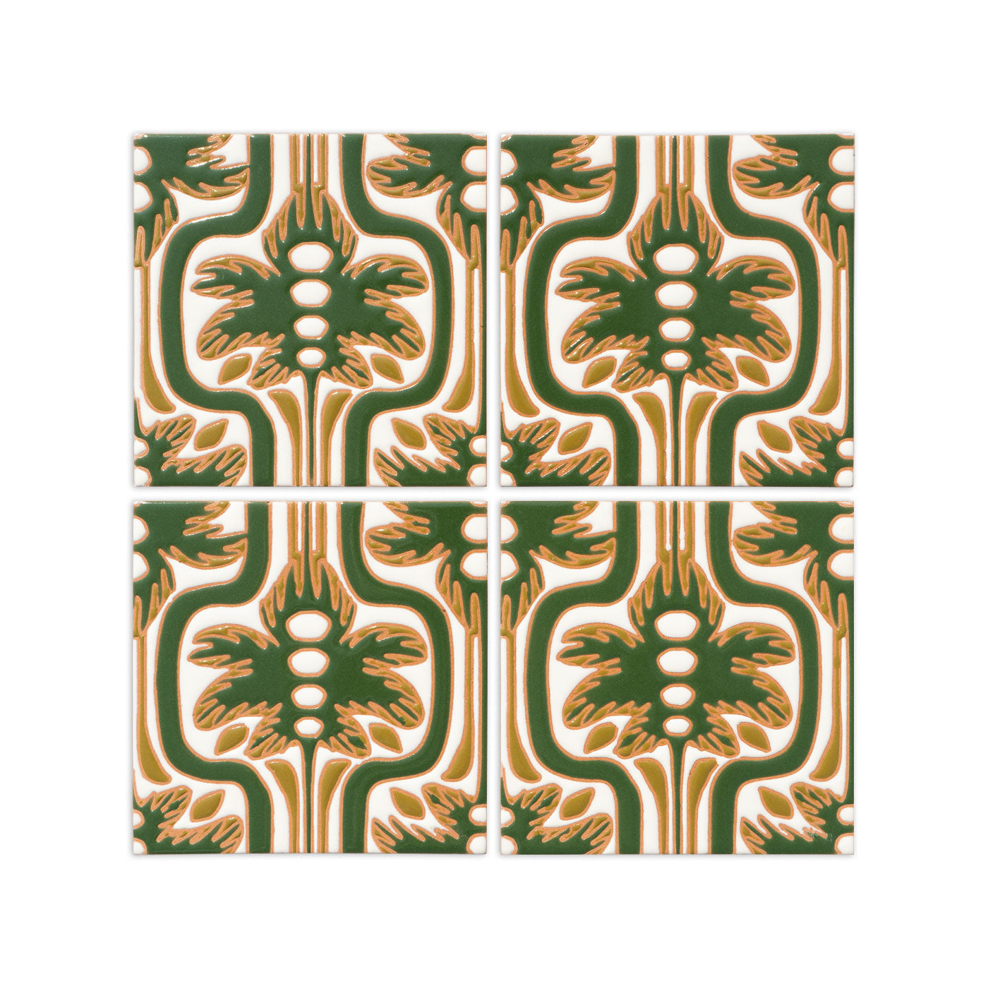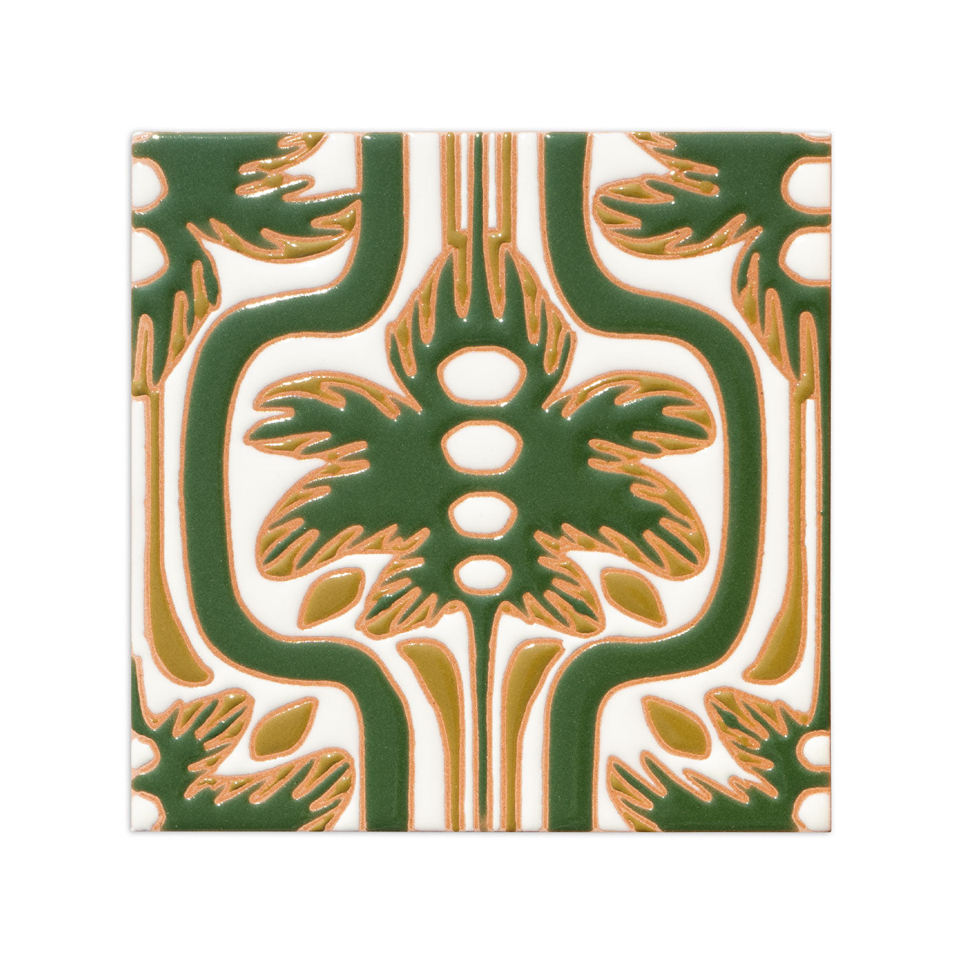 Our textured, gloss relief tile is hand-applied. Featuring a smaller-scaled 6"x6" design, Perfect for whimsical backsplashes, bathrooms, and bold bar faces.