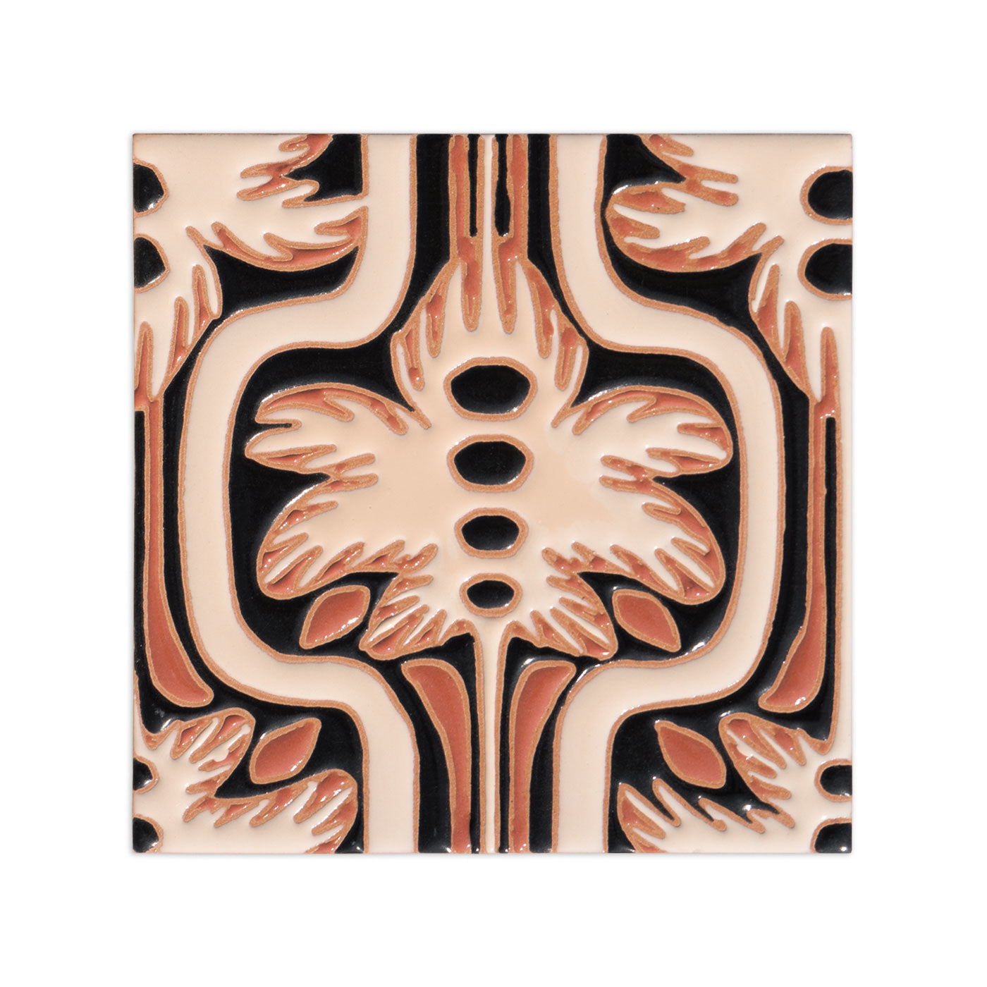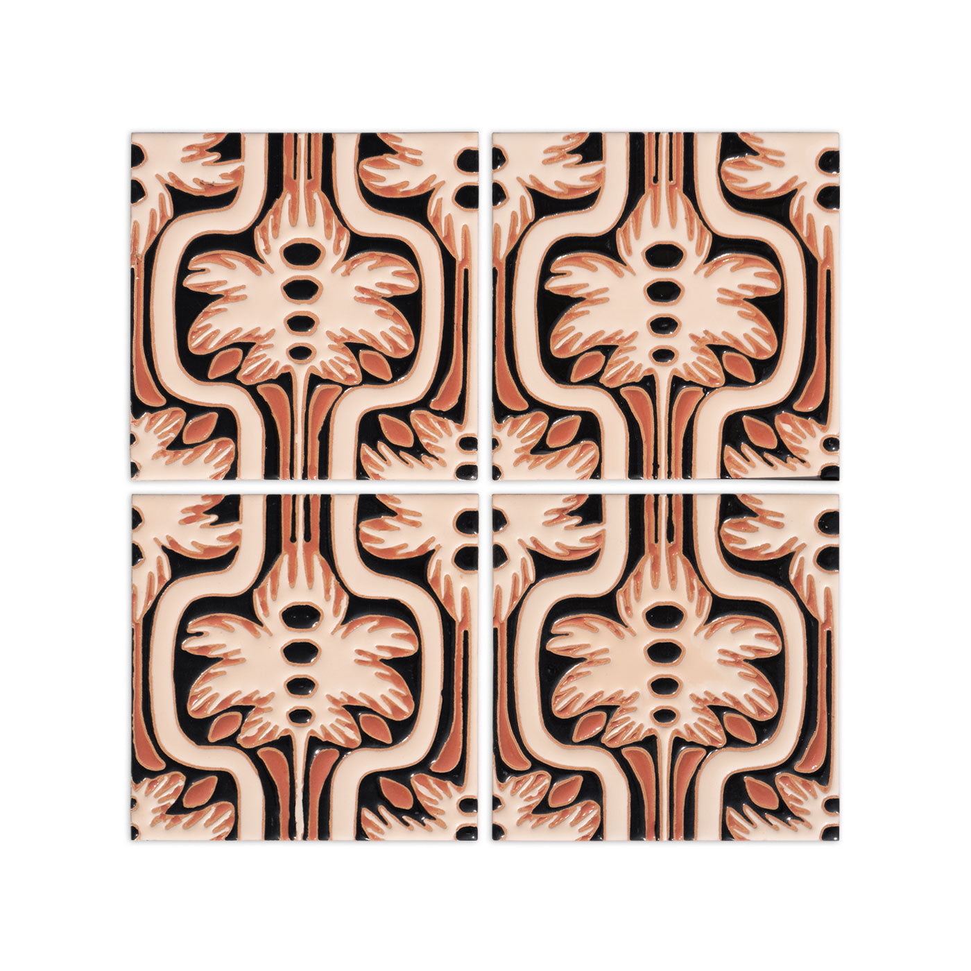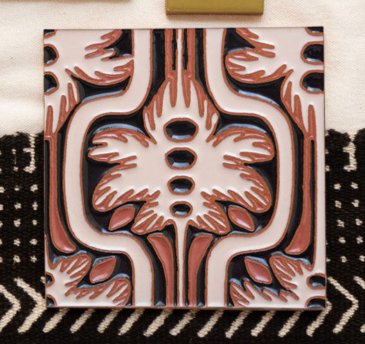 Our textured, gloss relief tile is hand-applied. Featuring a smaller-scaled 6"x6" design, Perfect for whimsical backsplashes, bathrooms, and bold bar faces.