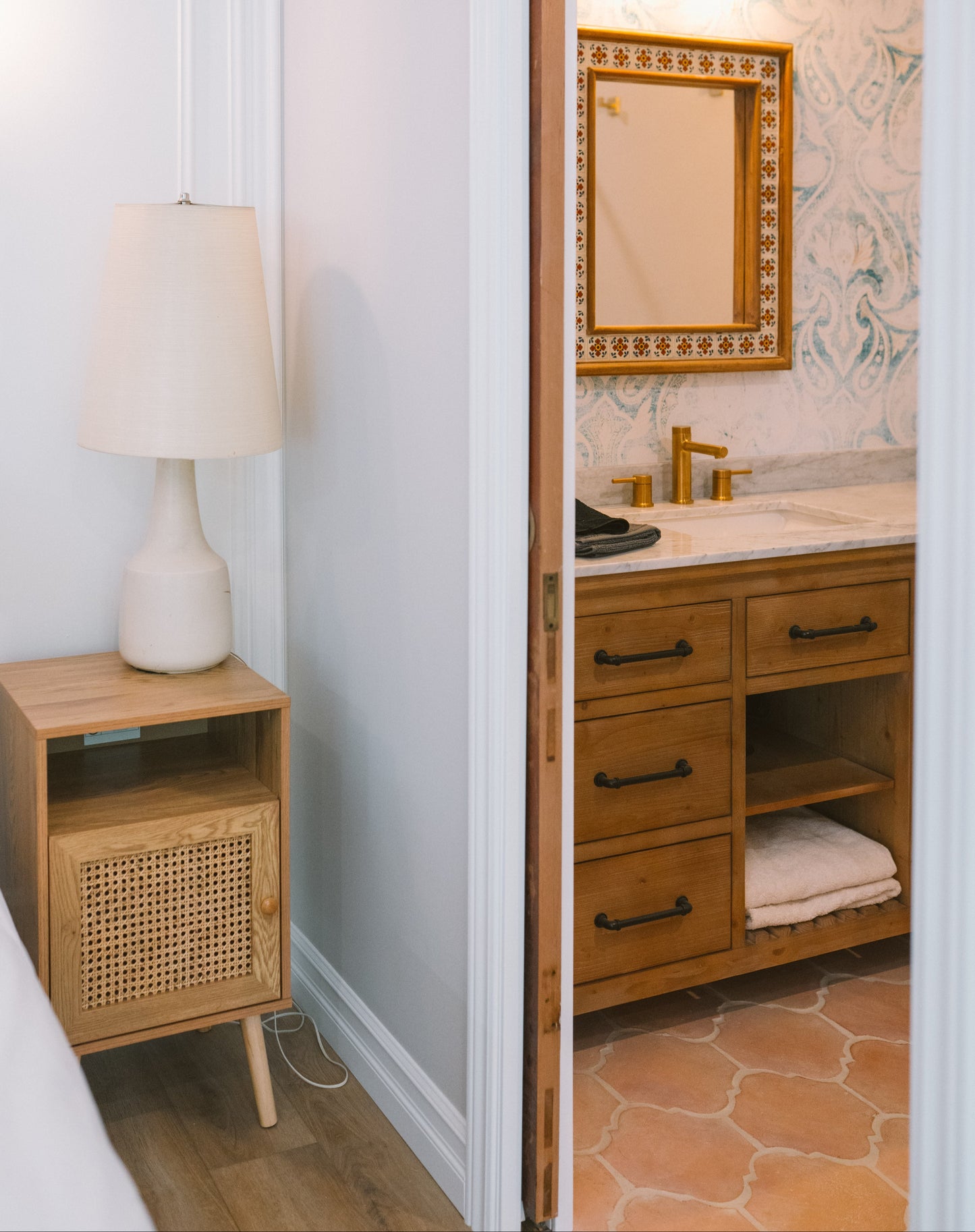 Wood Transition: You can use a matching wood door transition piece for a seamless shift from terracotta to wood flooring, creating a connection. It may have a slight elevation depending on the installation surface heights.