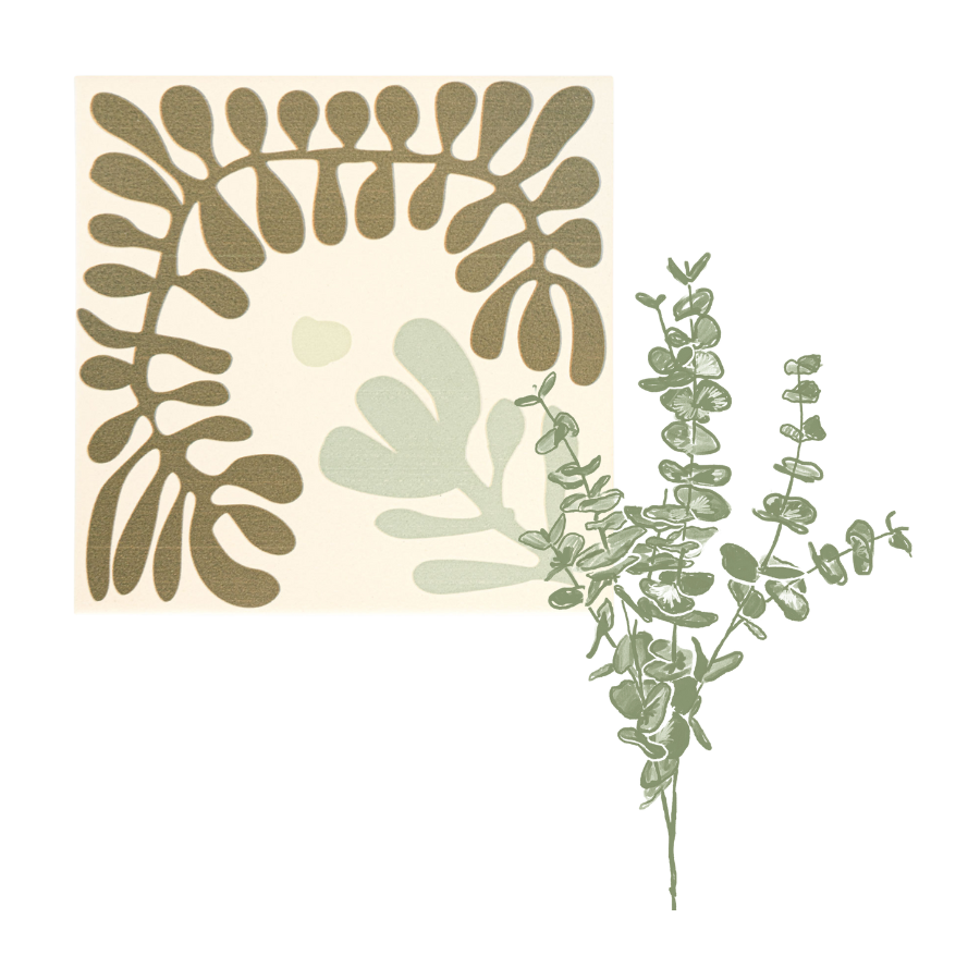 Unapologetically bold. Inspired by eucalyptus sprigs that illustrator Sarahi would sketch from local florería’s. This design combines organic shape with modern art, a dream of maximalists and minimalists alike.