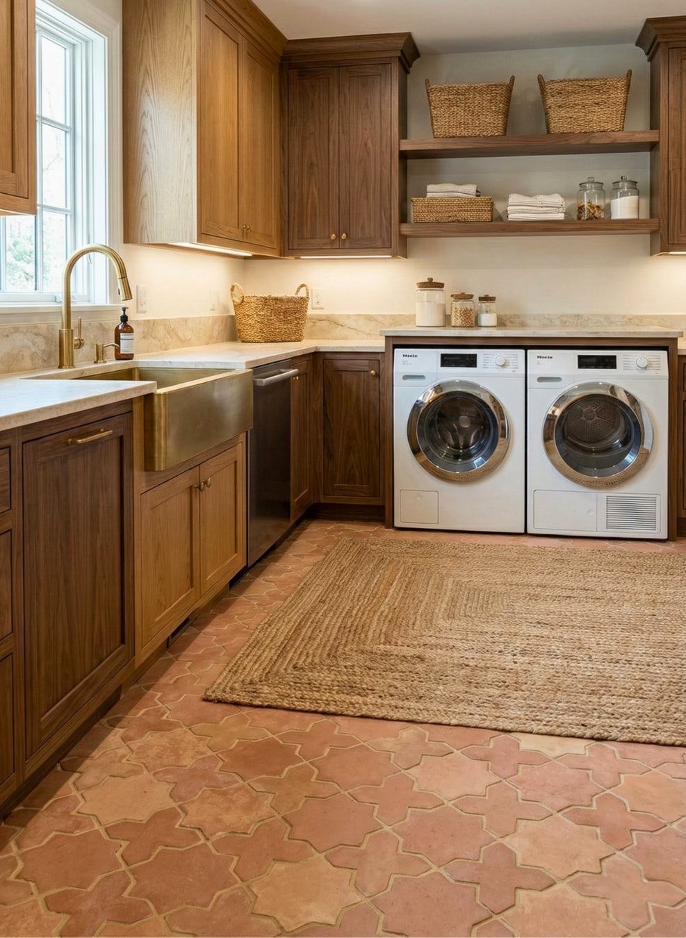 Wood Transition: You can use a matching wood door transition piece for a seamless shift from terracotta to wood flooring, creating a connection. It may have a slight elevation depending on the installation surface heights.