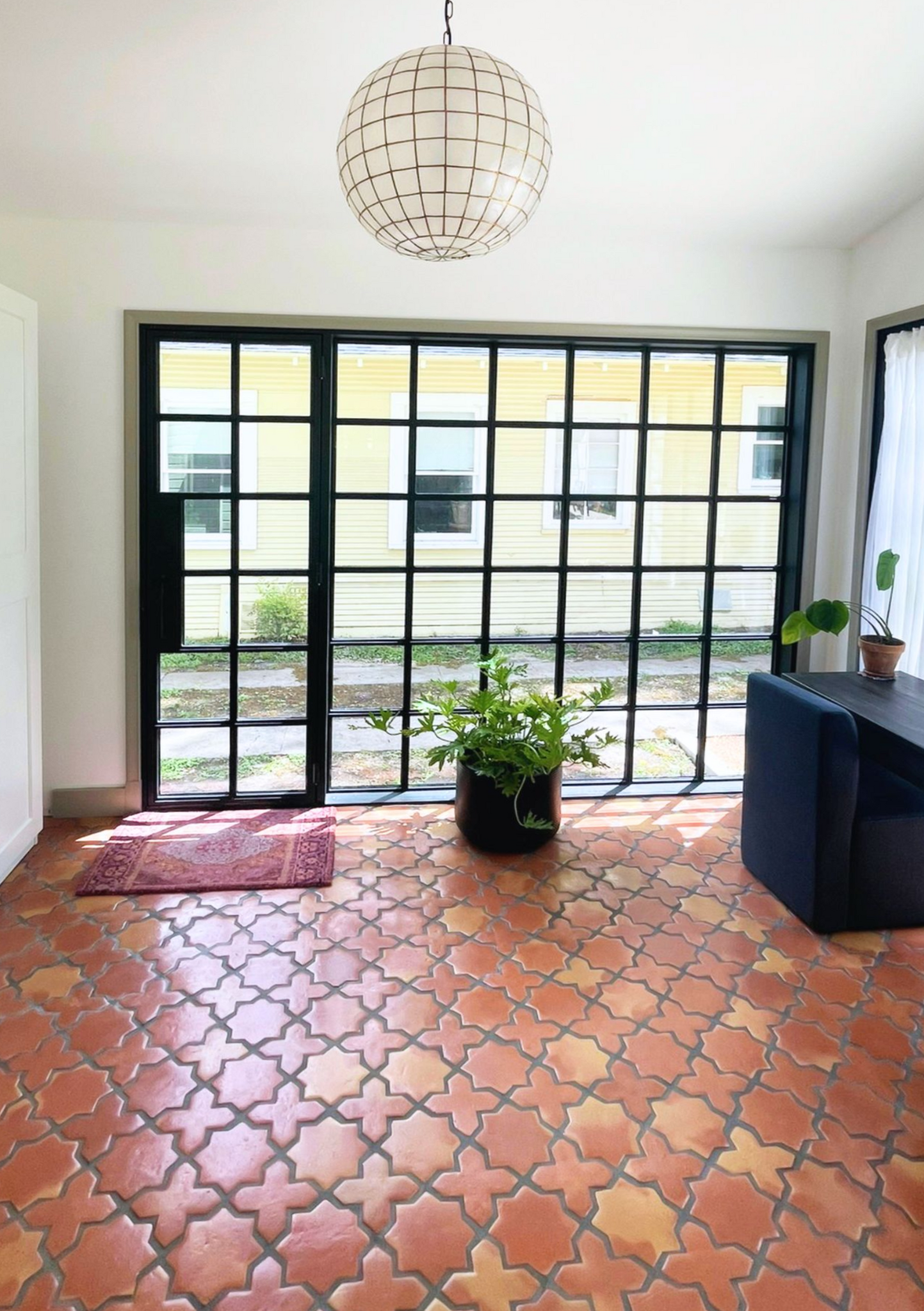 Wood Transition: You can use a matching wood door transition piece for a seamless shift from terracotta to wood flooring, creating a connection. It may have a slight elevation depending on the installation surface heights.