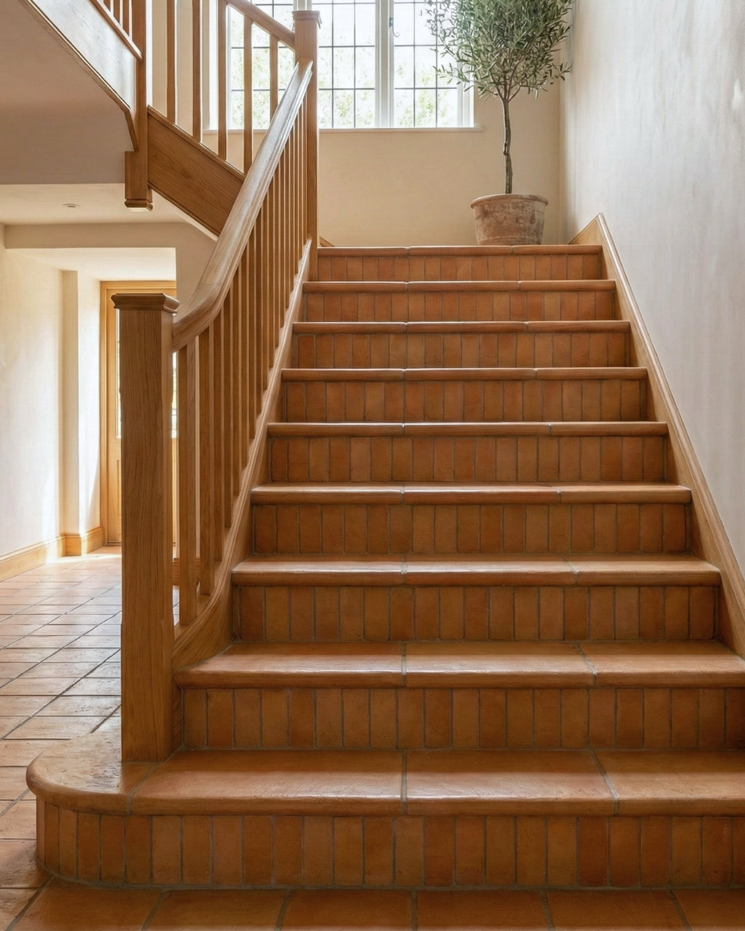 Wood Transition: You can use a matching wood door transition piece for a seamless shift from terracotta to wood flooring, creating a connection. It may have a slight elevation depending on the installation surface heights.