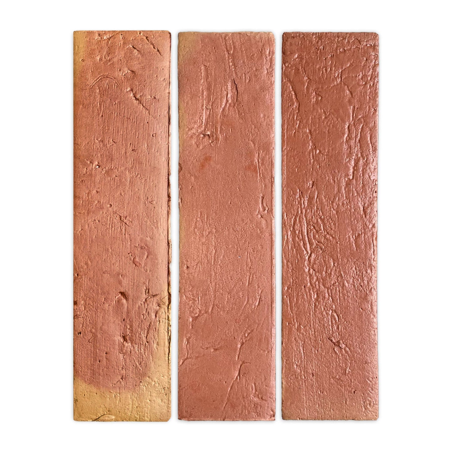 It’s normal to find slight indentations, bumps, divots, scuffs, and even the occasional paw print on the surface of our tiles. You may find excess clay or minor chips around the edges or on the back of the tiles, as well as marks or lines. All of these are common for authentic, handmade terracotta tiles.