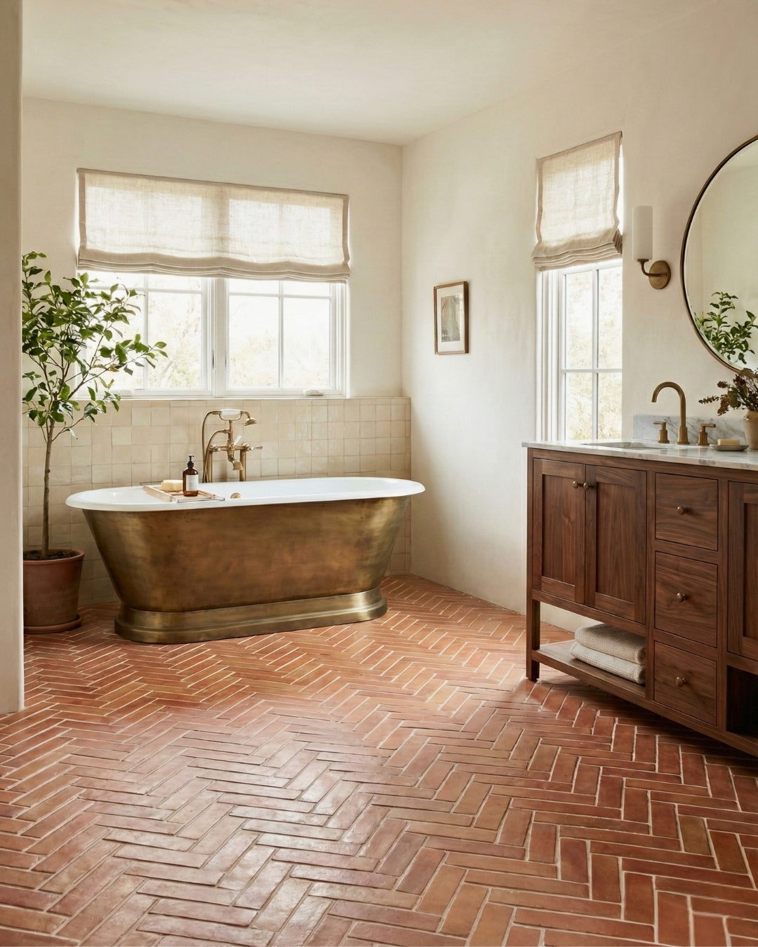 Satin pre-sealed terracotta tiles feature a semi-gloss, low-sheen finish.
