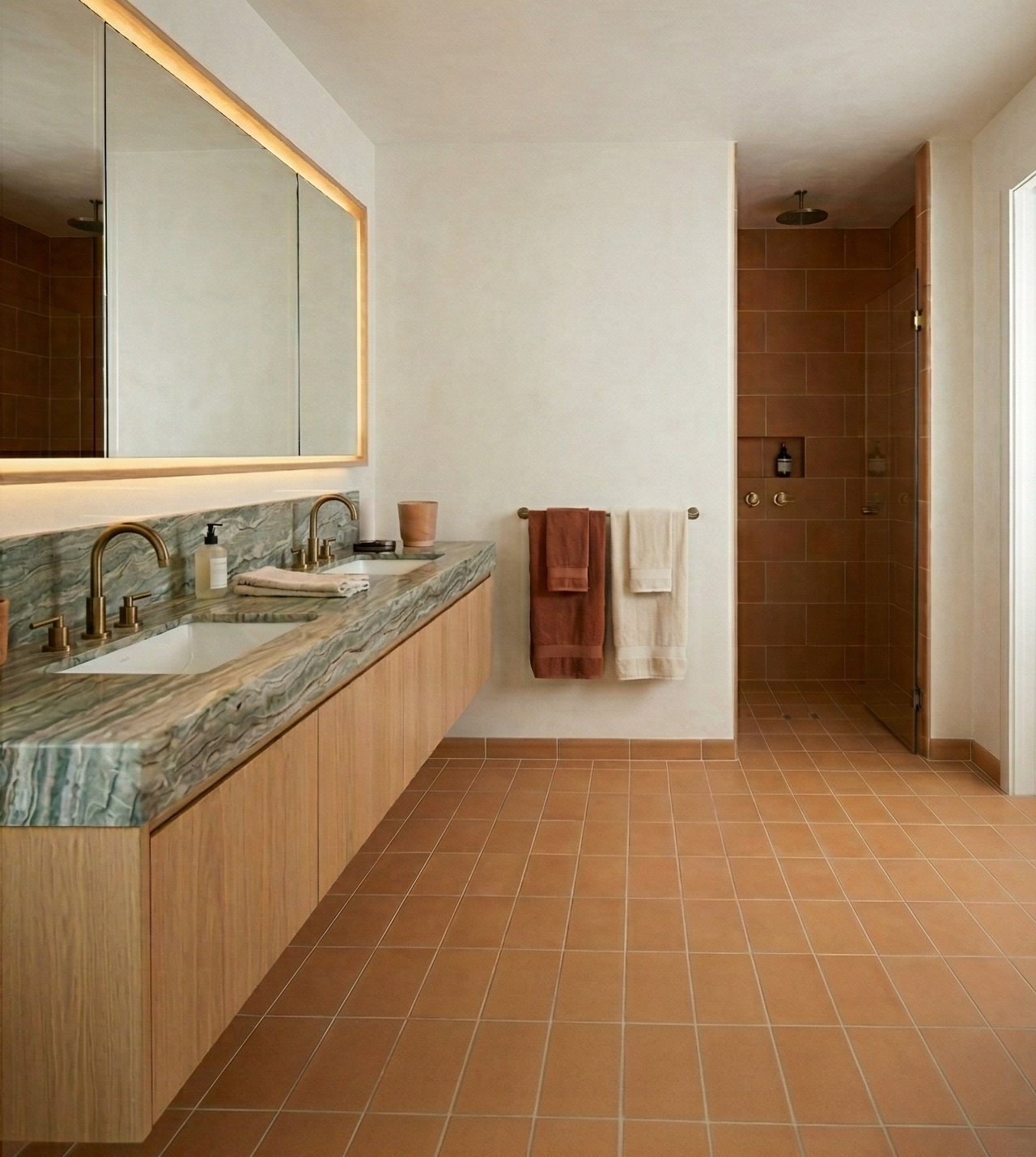 Great slip resistance -- ideal for outdoor spaces and bathrooms. The textured surface, offer enhanced grip, but may require a bit more effort to clean. Cotto has low porosity and high density, making it both durable and resistant to stains and absorption.