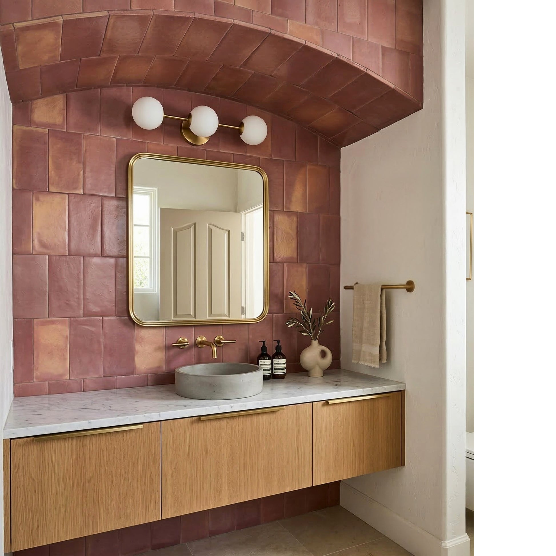 The tiles are sun dried and wood fired in artisanal kilns, a process that enhances their natural tonal movement and creates the distinctive patterns and variation Saltillo is known for.