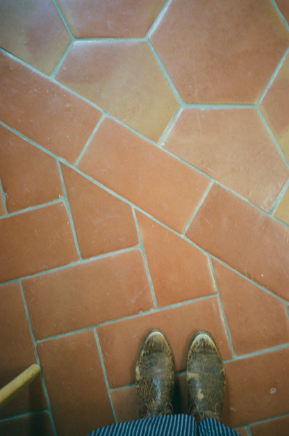 To maintain cleanliness, regularly sweep, dust, or vacuum your terracotta tile. Opt for a soft-bristled broom or a vacuum cleaner. For deeper cleaning, use a damp mop with warm water and our Palo Santo Cleaner Concentrate to remove dirt and grime.to remove dirt and grime.
