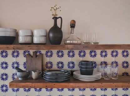 Every Talavera tile is handcrafted by artisans in a region synonymous with tile artistry. Using locally-sourced red clay, our makers transform raw earth into ceramic canvases through a multi-step process that includes: Hand-cutting and shaping, careful screening of intricate patterns by applying vibrant glazes and finally, firing each piece in a kiln for durability and depth.