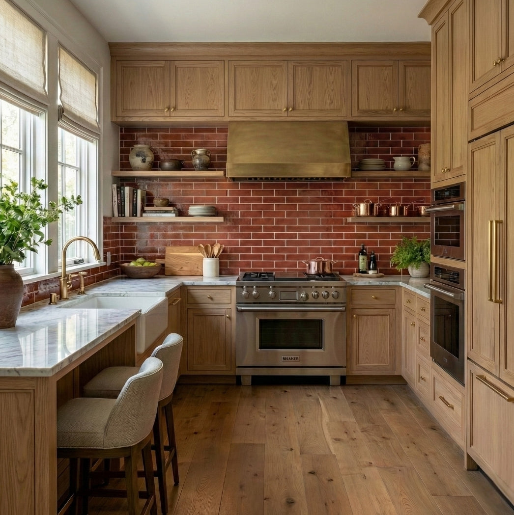 Between 1/8" and 1/4" to accommodate the natural variation that comes with handmade tiles. It’s common for there to be slight size differences, up to ± 1/4", which is completely normal. A slightly wider grout line helps manage alignment and leveling.