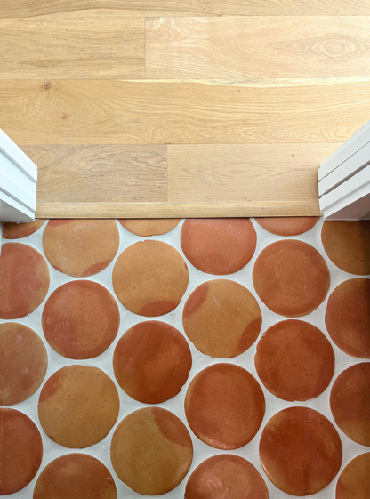 Wood Transition: You can use a matching wood door transition piece for a seamless shift from terracotta to wood flooring, creating a connection. It may have a slight elevation depending on the installation surface heights.