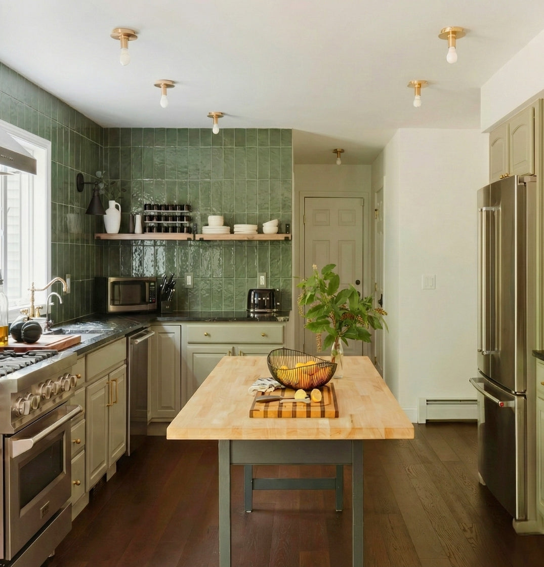 Larger joints are used with larger format tiles to accommodate for irregular sizing of handmade tiles while maintaining straight joints and their traditional aesthetic.