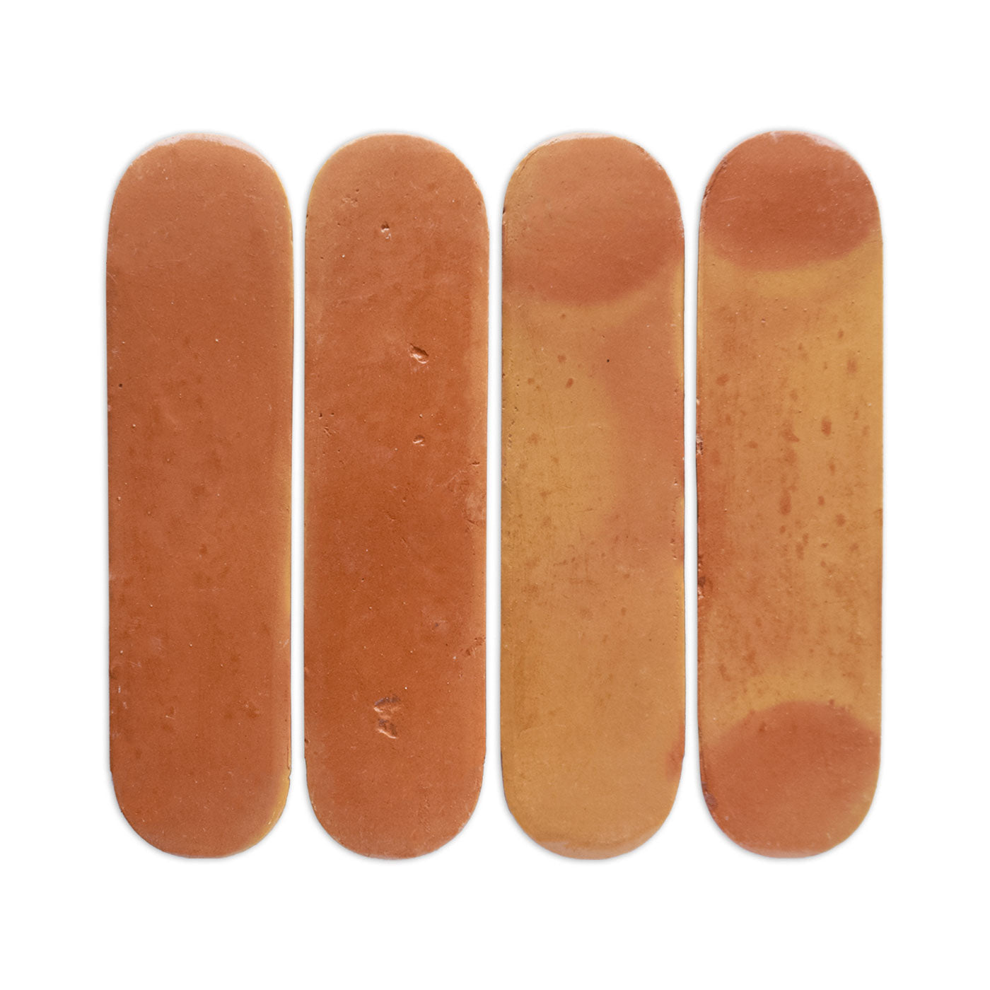 It’s normal to find slight indentations, bumps, divots, scuffs, and even the occasional paw print on the surface of our tiles. You may find excess clay or minor chips around the edges or on the back of the tiles, as well as marks or lines. All of these are common for authentic, handmade terracotta tiles.
