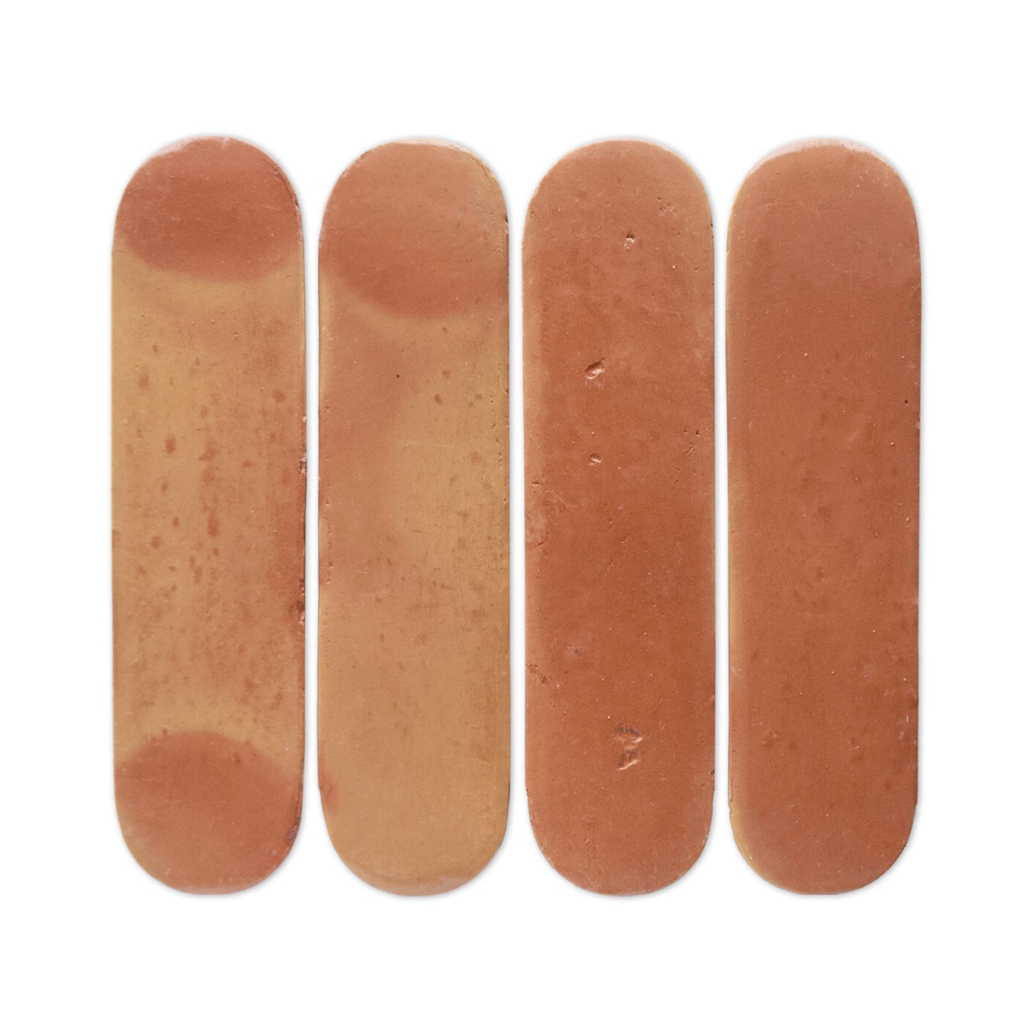 It’s normal to find slight indentations, bumps, divots, scuffs, and even the occasional paw print on the surface of our tiles. You may find excess clay or minor chips around the edges or on the back of the tiles, as well as marks or lines. All of these are common for authentic, handmade terracotta tiles.