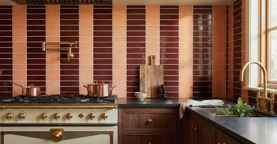 Between 1/8" and 1/4" to accommodate the natural variation that comes with handmade tiles. It’s common for there to be slight size differences, up to ± 1/4", which is completely normal. A slightly wider grout line helps manage alignment and leveling.